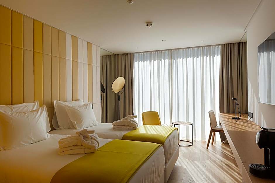 This twin room has a garden view, mini-bar and bathrobe. This room offers a view of the daily videomapping show, performed in the interior garden of the hotel.